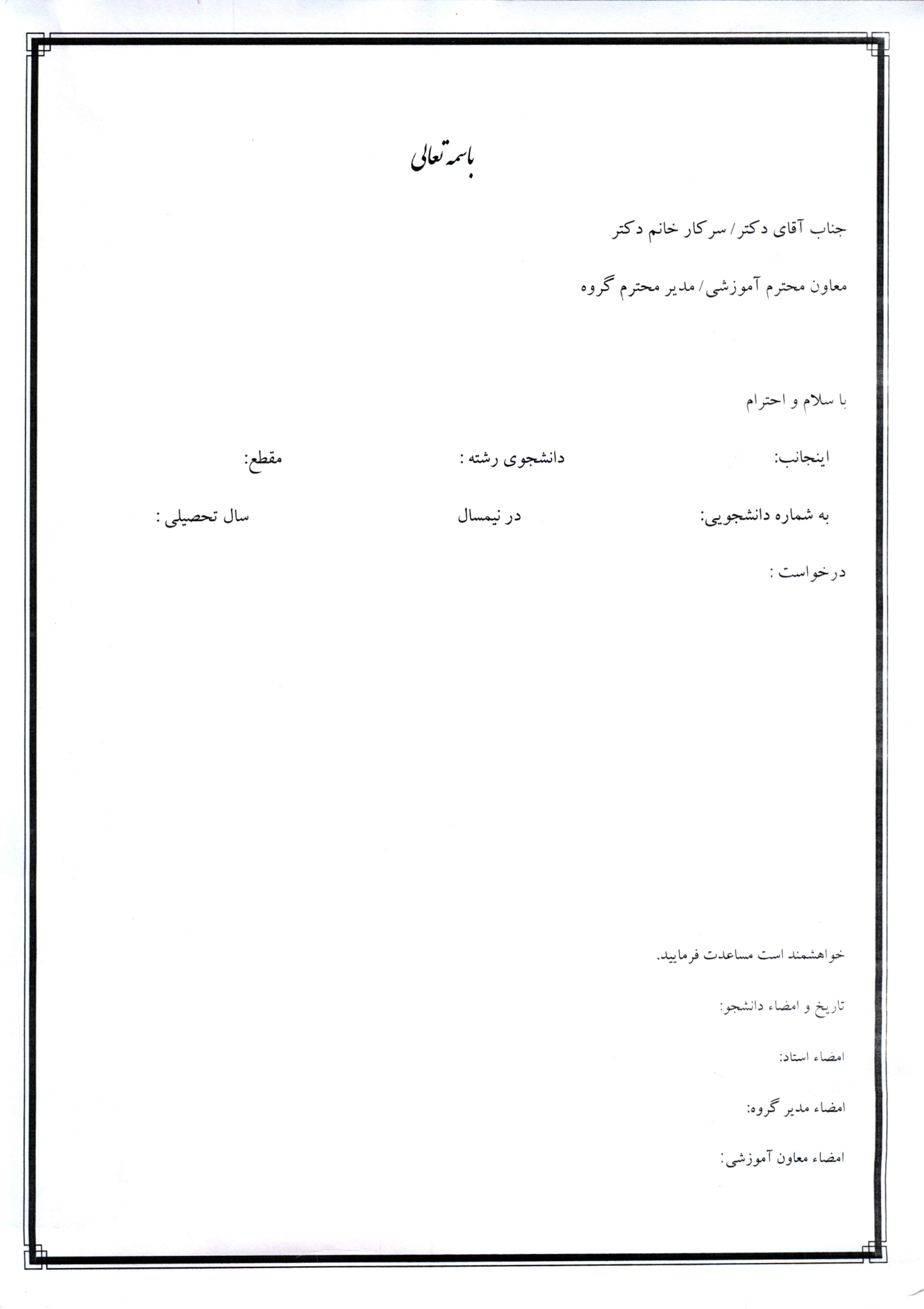 2 | فرم درخواست موجه نمودن غيبت دانشجويان (به دليل مشكلات پزشكی) |