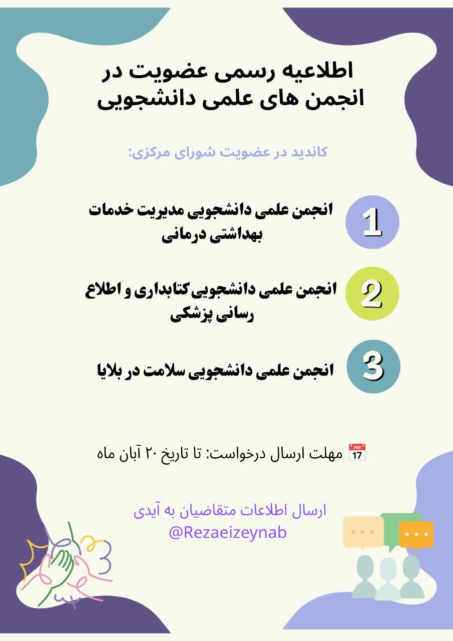 📄 برای آشنایی بیشتر با حوزه فعالیت انجمنهای علمی، توضیحات پیوست را مطالعه نمایید.👇🏻